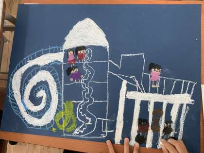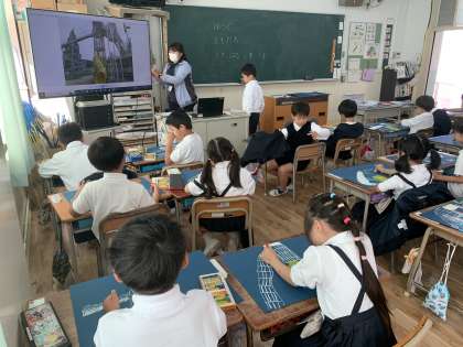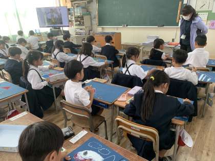 1年生の図工の学習です。先日の花園中央公園での遠足の様子を絵に表しています。