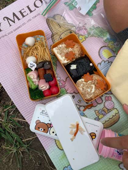 お弁当の時間です。おいしそうなお弁当をしっかり食べています。