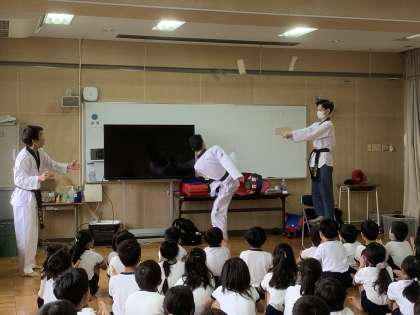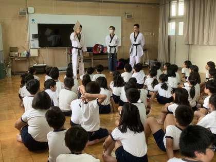 3年生では、課内実践で韓国のテコンドーについて学びました。