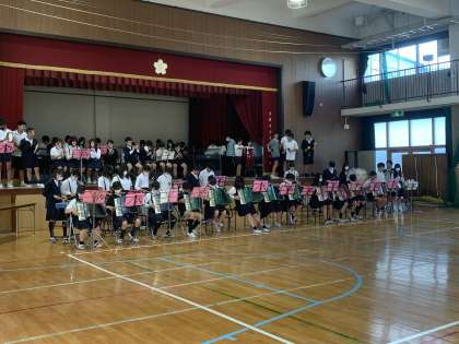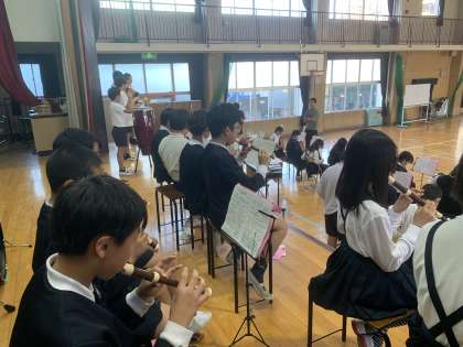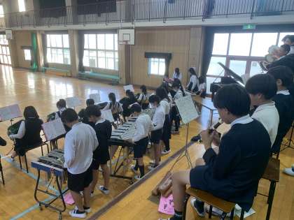 50周年記念式典に向けて6年生が合奏に取り組んでいる様子です。