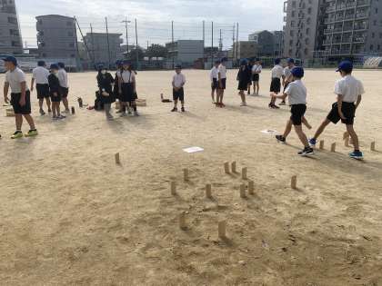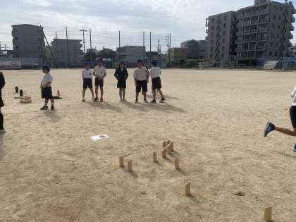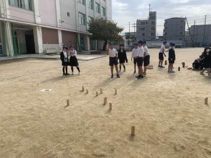 11月9日 4年生では、PTA予算で買ってもらった「モルック」を使って