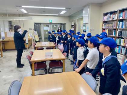 2年生は、生野図書館の見学に行きました。図書館の使い方や本の分類について詳しく説明を受けました。また、学校の図書館よりも多く本が展示してあることにも子どもたちは気づいていました。