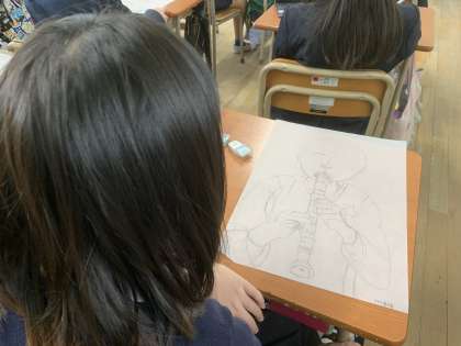 4年生では、図工「版画」の製作途中です。