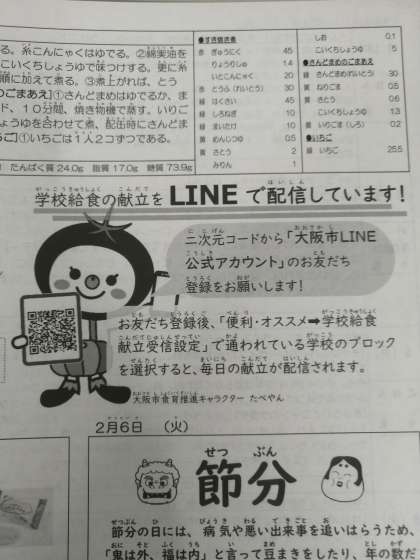 それを読み取りますと、学校給食(献立)が毎日配信されるそうです。