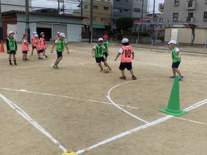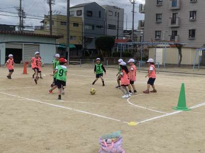 2年生では、体育でサッカーの学習に取り組んでいます。