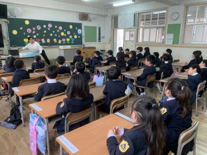 1年生の教室での様子です。ドキドキしながらもがんばっていました。
