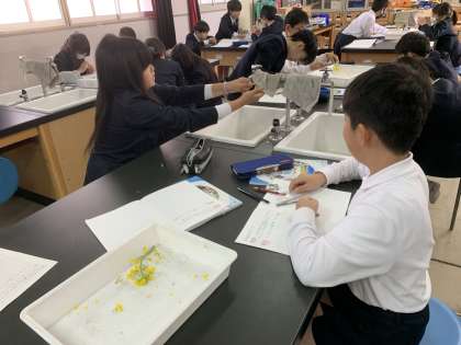 理科の学習ではアブラナの花のつくりの観察を行いました。