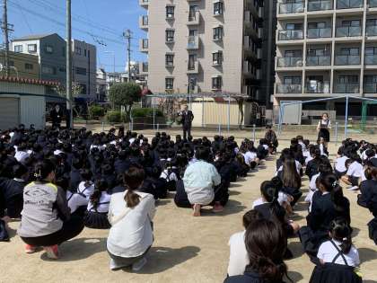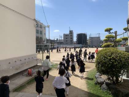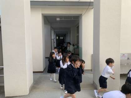 今日は、全学年で火事を想定した避難訓練がありました。「おはしも」を守って素早く静かに非難することができました。
