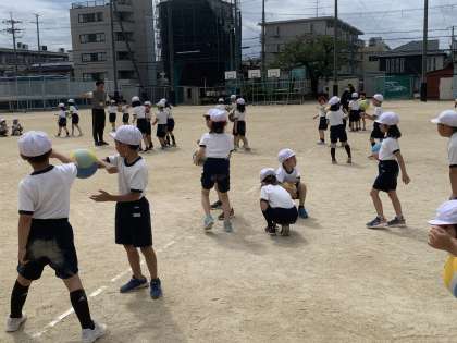 2年生は、1組、2組合同で体育の授業を行っています。