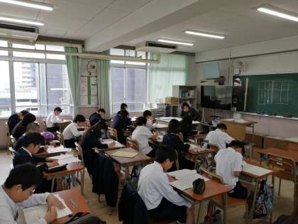 6年生はみんな必死のパッチで頑張ってテストに挑んでいました。