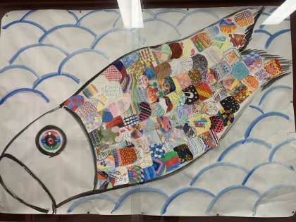 画像にあるのは、6年生の児童が協力してつくったこいのぼりです。