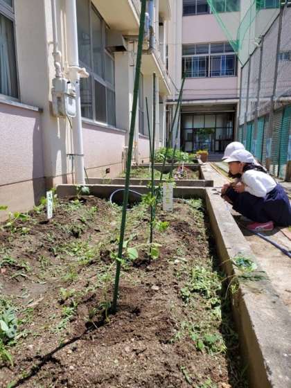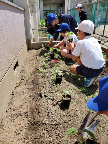 枝豆やきゅうり、花の苗を植えました。