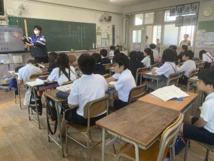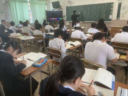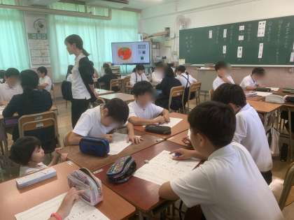 5年生は、国語の漢字の成り立ちの学習をしました。グループで相談しながら象形文字や指示文字の意味を話し合うことができていました。