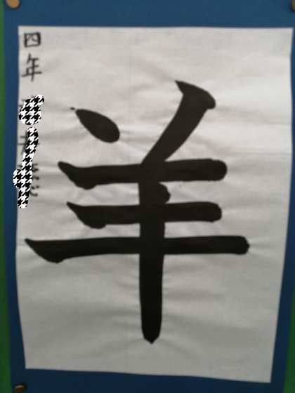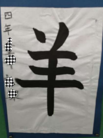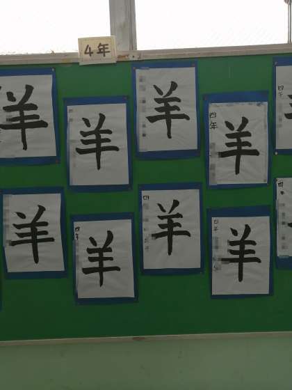 階段掲示を見ると、4年生で必修の習字の漢字「羊」があります。