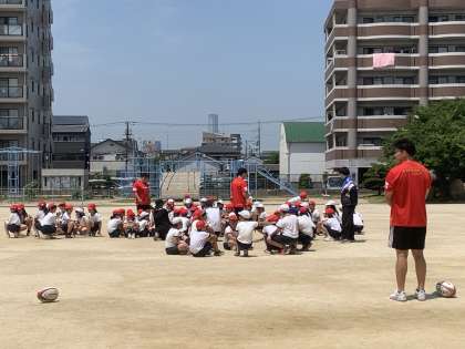 トップアスリート夢授業でラグビー、レッドハリケーンズの選手のみなさんが来校され、授業を行ってくださいました。