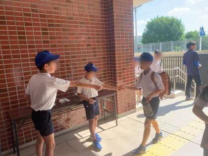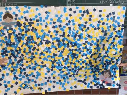 7月7日は、七夕ということで織姫と彦星が通れる橋をシールで作りました。元気よくあいさつできた子が多かったので大きな橋が完成しました。