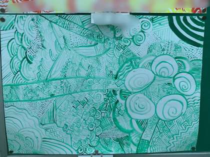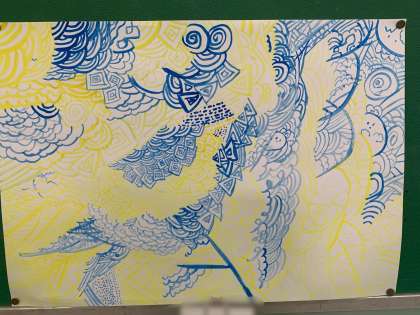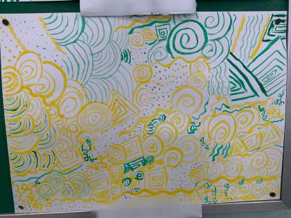 四年生の図工の作品です。線や点を工夫して素敵な作品に仕上げています。