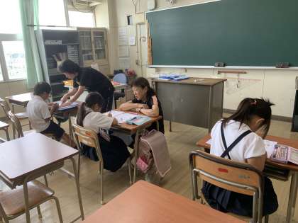 夏休みが始まりました。宿題を早く終えようとたくさんの児童が自主学習会に参加しています。また、放課後学習教室に参加した児童もよくがんばっていました。