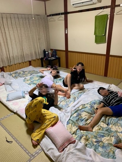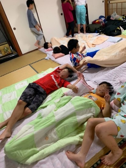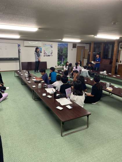 実行委員、リーダー、室長は今日の振り返りをしています。話し合ったことを各部屋で伝えます。それ以外のメンバーは部屋の片付けと寝る準備をしています。