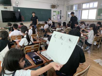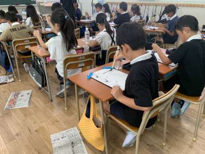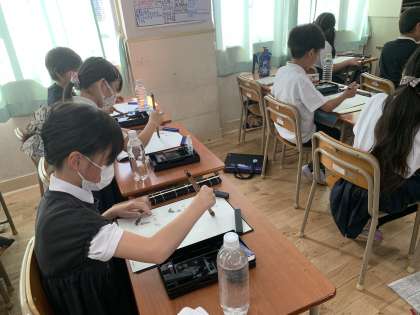 3年生は、毛筆の学習をしている様子です。みんな集中して取り組んでいます。