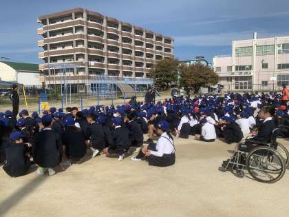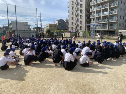 避難訓練(地震・津波)を行いました。みんなすばやく・静かに避難の練習をすることができました。