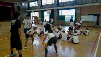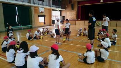 今年開幕した、プロバスケットボール新リーグ「Bリーグ」のチーム、大阪エヴェッサから、スクールのコーチ2名が来てくれました。各地でバスケットボールの指導をしているとのことでした。