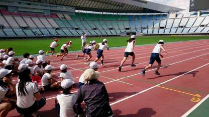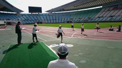 100m走です。ゴールまで遠いと感じるほど素晴らしいコースです。