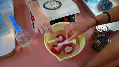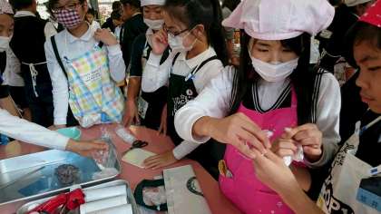 豚肉をソーセージにする体験をしました。羊の腸につめていきます。
