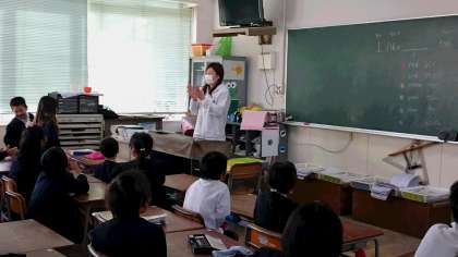 低学年からの英語活動では、電子黒板を使って楽しく取り組んでします。