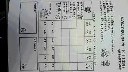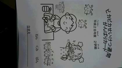 がんばりカードに自己評価とおうちの人からのコメントを記入して健康への意識を高めることを目指しています。