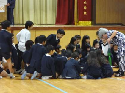 12月10日(土)瑞光苑の方々が来校され、児童たちにご老人の方とのふれあいや「認知症」に関する知識などを、わかりやすく日常生活の劇として教えてくださいました。