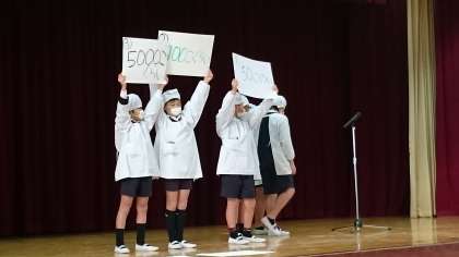 保健、給食にかかわることをテーマに、クイズ形式で発表してくれました。