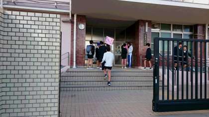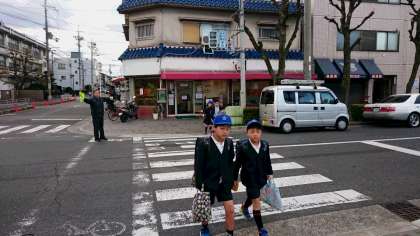 ポケットに手を入れながら登校している子どもも見られます。
