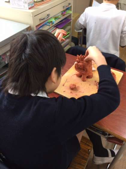 シーサーのつくり方のポイントを写真や動画で確認した後、シーサーをつくる活動をしました。