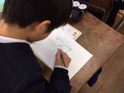 日本語と英語という言葉のちがいがあるので、今回は絵で自文化を紹介し、互いの暮らしぶりや好きなこと、興味を持って取り組んでいること、生活風景などを交流しました。