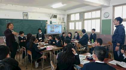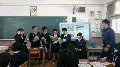 桃太郎などの物語をヒントに自分たちのストーリーを作り発表しています。