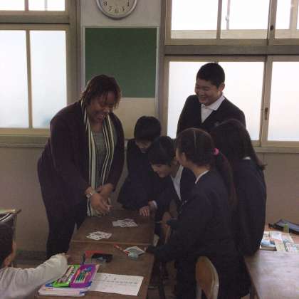 20分休みに、シャウナ先生と一緒にトランプをしました。ジェスチャーをしながら英語で一生懸命ルールを伝え、みんなで楽しく遊ぶことができました。