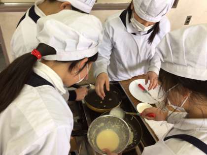 家庭科クラブでは、クレープづくりをしました。おいしいクレープを食べながら1年間の活動を振り返りました。