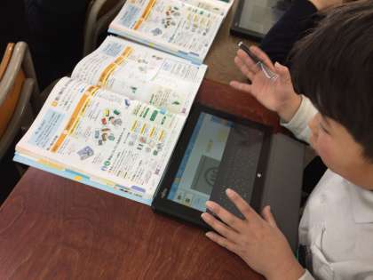 エコマークなどを見つけて写真に撮り、説明をつけて発表しました。