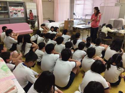 発育測定で身長と体重を測定しました。春休みの間に身長がぐんと伸びている子も多く、成長を感じました。