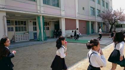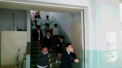 地震による津波に備え、4階の避難場所まで移動して訓練を終わりました。