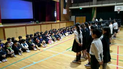 4年生からは歌とリコーダーの演奏をプレゼントしてもらいました。
