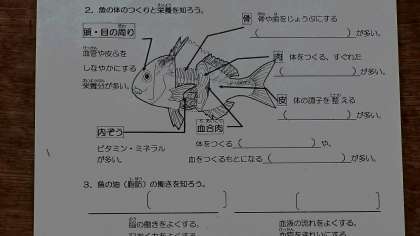 魚にどんな栄養があるのか、みんなで考えながら進めています。