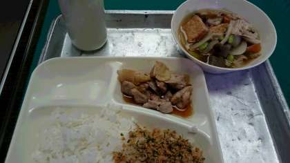 焼きとり・豚肉とあつあげの煮もの・紅ざけそぼろ