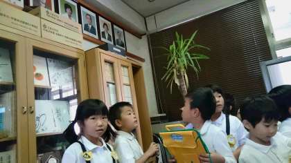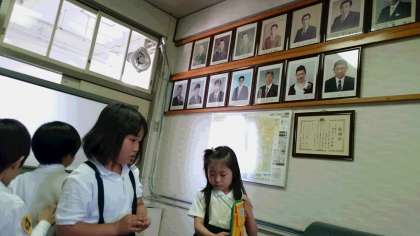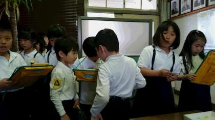 1年生に学校の特別教室などを紹介するために、2年生が引率してくれています。