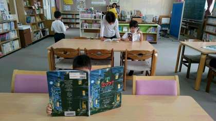 子どもたちは気になる図書を手に取り読んでいます。