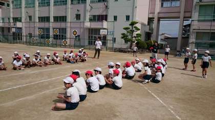 50m走のタイムを計り、組分けや個人走などの順番を決めていきます。