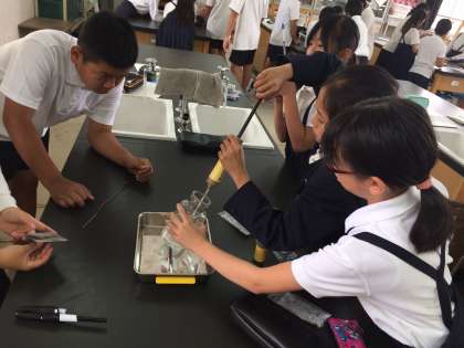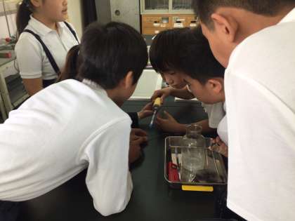 理科の授業で実験をしました。気体検知管を使って、ろうそくを燃やす前と燃やした後の空気の変化を調べました。