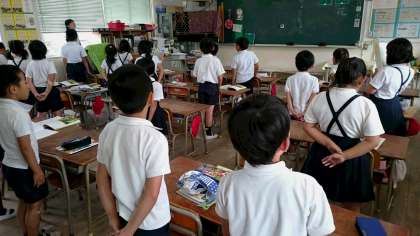 開会式練習では、運動会の歌を全校で歌いましたが、下校前に教室で練習していました。
