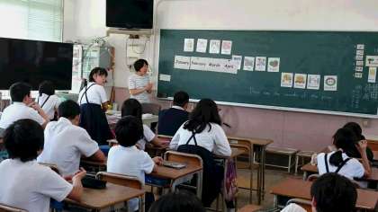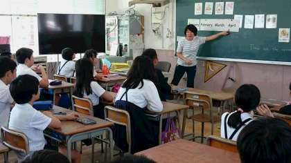 英語活動の時間には、担任も積極的に取り組んでいます。